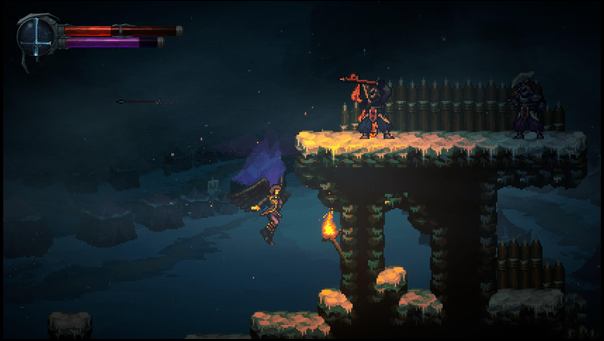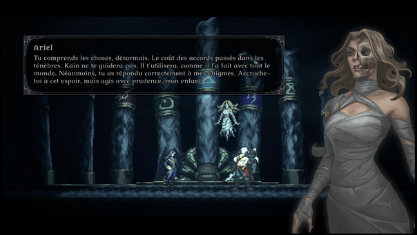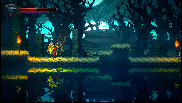 On suit ici la quête d’Elaleth, une vampire qui s’avère être la sœur de Raziel et qui cherche à se venger de la mort de Mathias son bien aimé, Mathias, tué de la main de son frère. Oui Raziel est humain, du moins dans une grande partie du titre et le jeu nous livre une vision des événements avant que ce dernier ne devienne à son tour un vampire. Le titre arbore un look 2D pixel agréable même s’il ne figure pas parmi les têtes d’affiche. C’est plutôt joli mais très lieu de ce qui peut être fait de nos jours. Résolument rétro dans son aspect visuel mais aussi dans son gameplay très simpliste et sa maniabilité assez rigide. Je dois avouer qu’avant d’être pris dans l’histoire, je rageais surtout sur son gameplay usé.