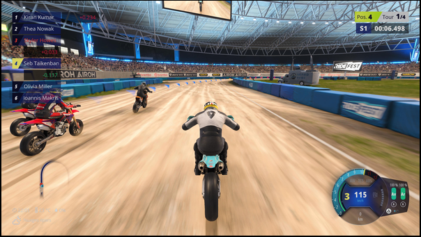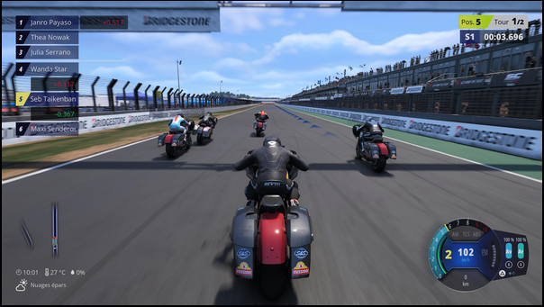 Techniquement, le passage intégral à l’Unreal Engine 5 se ressent dès les premiers tours de piste. Sur PS5, le titre dispose d’une fluidité exemplaire, indispensable pour une simulation de cette trempe même si l’on observe encore quelques éléments de décor pris d’apparitions fantomatiques. Les éclairages ont fait un bond de géant grâce au système météo « Sky Tech », offrant des reflets sur le bitume mouillé et des couchers de soleil à tomber. Mais c’est surtout la DualSense qui vole la vedette : les gâchettes adaptatives retransmettent avec une précision diabolique la résistance du freinage et les vibrations du moteur, tandis que le retour haptique nous fait sentir la moindre imperfection de l’asphalte. On n’est pas encore sur un photoréalisme absolu pour les décors, mais la modélisation des motos frise la perfection.