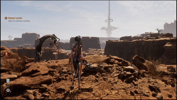 Si certains pourraient regretter un scénario assez convenu, extinction de l’espèce humaine, héroïne qui s’interroge sur sa propre existence, les méchants gentils et les gentils méchants, le lore est suffisamment bien mis en place pour que je me sois laissé guider tranquillement. Sans crier au génie, ca se laisse suivre avec plaisir et je dois dire que je n’ai pas forcément besoin de beaucoup plus dans un jeu de ce style. Car Stellar Blade c’est avant tout de l’action, guidée par la grosse mode de l’esquive-parade qui régie de nombreux jeux actuels. De ce coté là, c’est plutôt bien réalisé, avec des timings que l’on apprend progressivement à négocier et un certain nombre de possibilités et de compétences évolutives qui permet de réaliser de jolis affrontements. Le jeu ajoute son petit grain de sel avec quelques bonus octroyés en cas de parade ou d’esquive parfaite: passage dans le dos pour surprendre l’ennemi, ennemi repoussé alors qu’il allait effectué une attaque puissante. Vous apprendrez rapidement à analyser le comportement ennemi grâce à un code couleur qui vous indiquera si l’attaque doit être préférablement parée ou esquivée. A ce système déjà bien dynamique, s’ajoute la possibilité de bénéficier d’attaques spéciales alimentées par une jauge et qui bénéficient toutes de la possibilité d’augmenter en puissance via un sphèrier. En combinaison avec un équipement riche et pouvant être upgradé avec le loot omniprésent du titre, vous obtiendrez une héroïne avec une force de frappe assez intéressante. Si le système de combat est assez riche, il constitue peut être aussi la seule véritable originalité du titre. Car le reste du titre n’est pas mauvais, entendons nous bien, mais il manque singulièrement d’originalité. Avec les tours que l’on doit réactiver pour alimenter certaines zones en énergie, certaines zones scientifiques qui m’ont fait grandement penser à un certain titre de chez Capcom, un design de perso qui m’a fait lorgner du coté d’un certain Kojima, j’en passe et des meilleurs. Stellar Blade essaie de piocher à droite et à gauche y compris dans les environnements avec les classiques métro, égouts, labo… Faut-il y voir une sorte d’hommage? Peut être, et après tout pourquoi pas. Mais le risque de perdre sa propre identité au profit de quelque chose qui tend vers le générique est élevé.