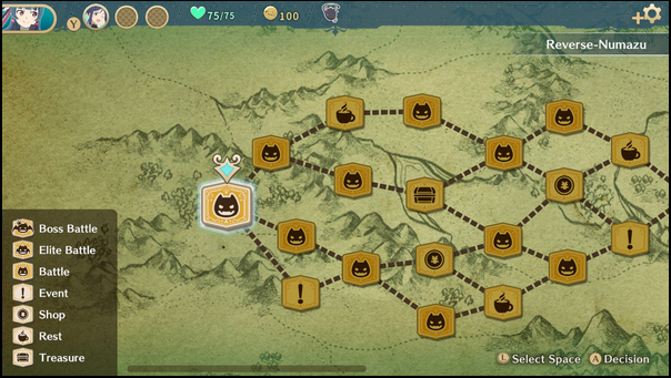 Après Yohane the parhelion – Blaze in the Deepblue, un excellent metroidvania chill sur lequel je donnais mon avis ici, un deuxième titre tiré de la série animée Yohane the Parhelion sera prochainement disponible. Exit le metroidvania pour laisser place à un deck builder, comprendre ici un titre où vous affronterez vos ennemis par le biais de cartes aux pouvoirs variés, cartes d’attaque, de défense ou encore de sorts. Sous ces airs simples, le titre se révèle assez accrocheur par la synergie que l’on peut établir entre les cartes et le petit coté stratégie à mettre en place pour se constituer un deck permettant de venir à bout des bosses. Chaque monde est en effet représenté par une carte aux multiples embranchements et sachant que vous ne pourrez pas visiter toutes les cases, il vous sera nécessaire de bien anticiper votre route pour favoriser les combats ou au contraire participer à des événements ou encore vous reposer au café pour regagner des PVs.