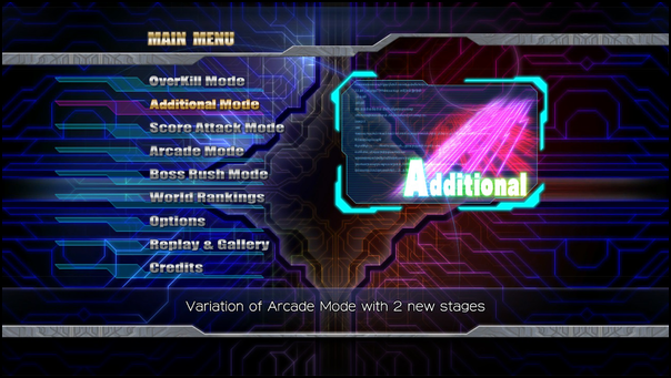 On ne peut pas reprocher au titre d’être avare en mode de jeux. Outre l’Arcade mode, celui qui se rapproche le plus de l’arcade originale, le titre propose un mode overkill, un additional mode, un score attack, un mode secret à débloquer ainsi qu’un mode galerie, un online board et les traditionnelles options.